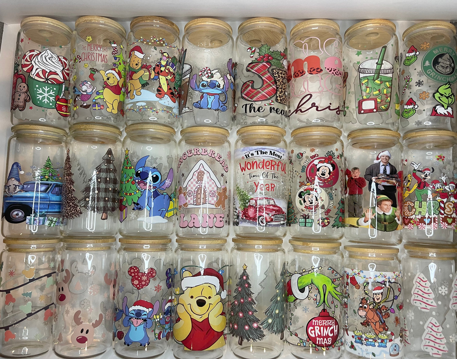 Enjoy your favorite cold holiday beverages with our 16oz Christmas glass cups, perfect for iced coffee, cold brew, and seasonal drinks!